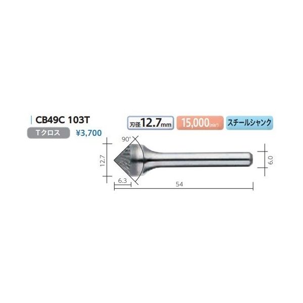 | 商品仕様1 | ●【商品説明】●右刃・左刃共にねじれ刃。Type46とType49のみ。●スパイラルカットに比べ切削抵抗が小さくなります。●チャタリング(ビビリ)を最小限に抑えることができます。●排出される切粉は粉状になります。【その他注意事項】●超硬バーにキズ、外見上の異常等の無いことを確認の上使用下さい。●取付けは正しく行い、シャンクの突き出し長さ(オーバーハング)を最小にし、確実にチャッキングして下さい。●空回転し振れや異常の無いことを確認する。●作業中に無理にこじったり、過剰な力を押し付けないで下さい。●作業中は必ず保護メガネや防塵マスクを着用して下さい。●シリーズ:CBシリーズ●ヘッド形状:タイプ49●カット:Tクロス●シャンク径(mm):6.0●刃径(mm):12.7●刃長(mm):6.3●全長(mm):54●推奨回転数(min-1):15000●シャンク材質:スチールシャンク | ||