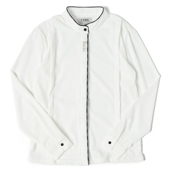 | 商品の特徴 | 少し光沢感があり、しなやかでさらっとした手触りのバンドカラータイプのシャツ。ボタンが見えない比翼仕立てなので綺麗目なコーディネートにおすすめです。肩から下に入ったプリーツデザインや、ロゴ入りパイピングで細かい部分にこだわっています。胸元のラメ刺繍、背中の縦ロゴもおしゃれポイント。1枚で着るのもよし、ベストと合わせてレイヤードもおすすめ。 | ||