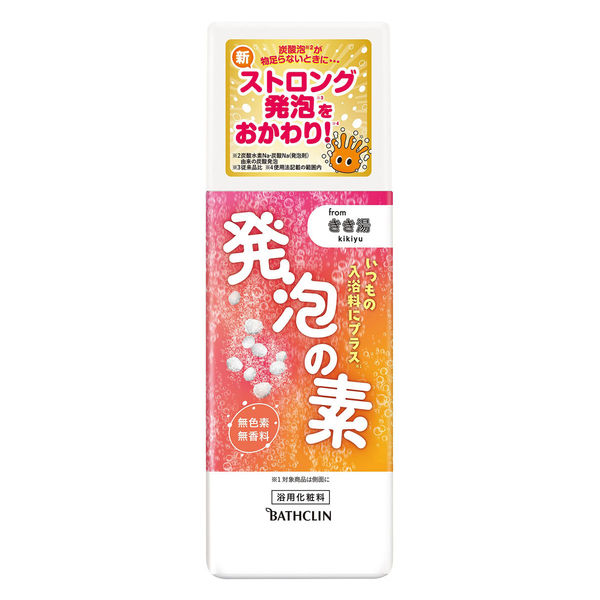 | 商品の特徴 | ●発泡の素from きき湯。いつもの入浴剤にプラス*1。炭酸泡*2が物足らないときに・・・●ストロング発泡*3を おかわり!*4*1対象商品は側面に *2炭酸水素Na・炭酸Na(発泡剤)由来の炭酸発泡*3従来品比 *4使用法記載の範囲内 | ||