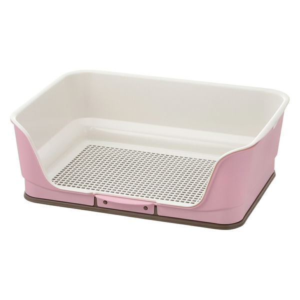 | 商品の特徴 | ●メッシュの周りにすき間がない、失敗しにくい壁付タイプのトイレです。●子犬がトイレをおぼえやすい3面壁付きなので、トイレのしつけがしやすく、おしっこの飛び散りや漏れを抑えます。●プラスチック製なので、水洗いできてお手入れ簡単です。●ゴム脚付きなので、ズレにくく床をキズつけません。●メッシュ付きで、シーツのかみちぎりや引っかきなどのいたずらを防ぎます。また、しつけが終わった後など、必要に応じてメッシュを取り外して使用できます。●壁付き枠にメッシュをセットしたまま外せるので、シーツ交換が簡単です。 | ||