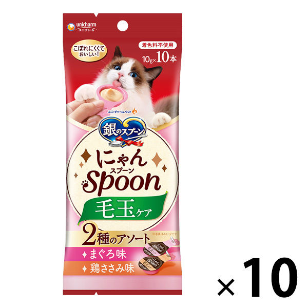 銀のスプーン にゃんスプーン 2種アソート(まぐろ&ささみ)毛玉ケア(10g×10本)10袋 猫用 おやつ