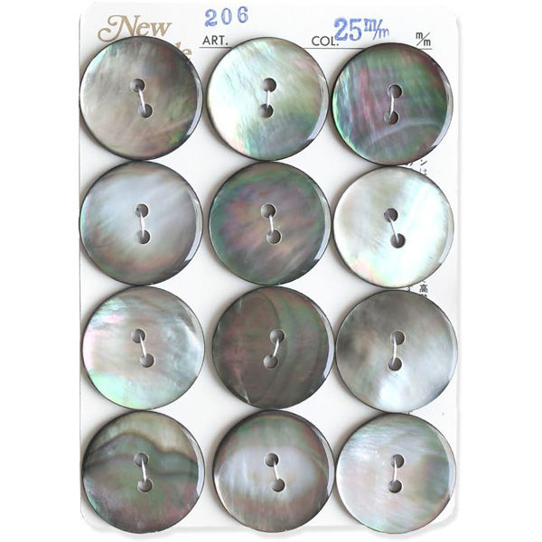 | 商品の特徴 | 天然貝から削り出した高級感のある天然貝ボタンです。■サイズ/φ25mm■素材/アコヤ貝、黒蝶貝■1台紙12個付 | ||