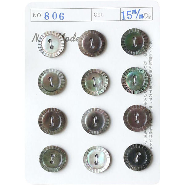| 商品の特徴 | 天然貝から削り出した高級感のある天然貝ボタンです。■サイズ/φ15mm■素材/アコヤ貝、黒蝶貝■1台紙12個付 | ||