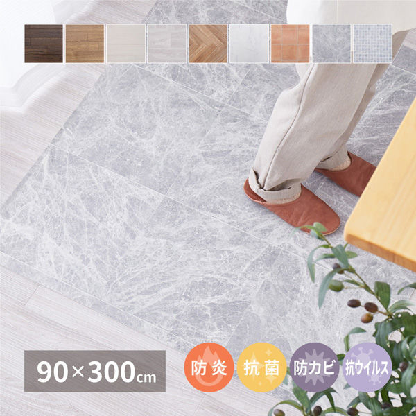 【玄関渡し】 萩原 抗ウィルス・抗菌・防カビ機能付き 水拭きできるクッションフロア シャビーホワイト 90×300cm(直送品)