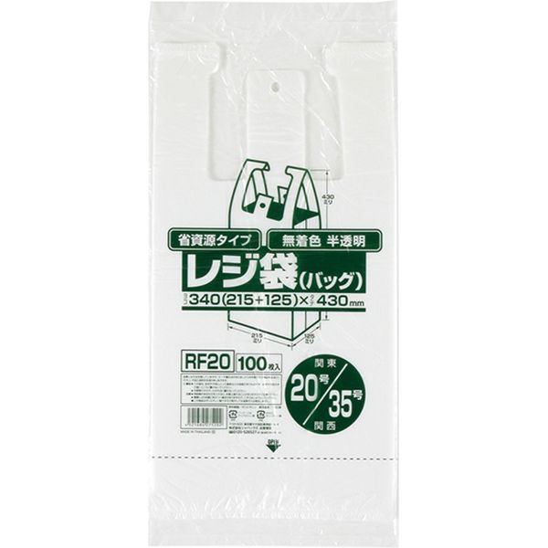 ジャパックス レジ袋(半透明)省資源 ベロ付きブロック・エンボス 関東20号/関西35号 厚み0.011mm RF20 1冊(100枚)
