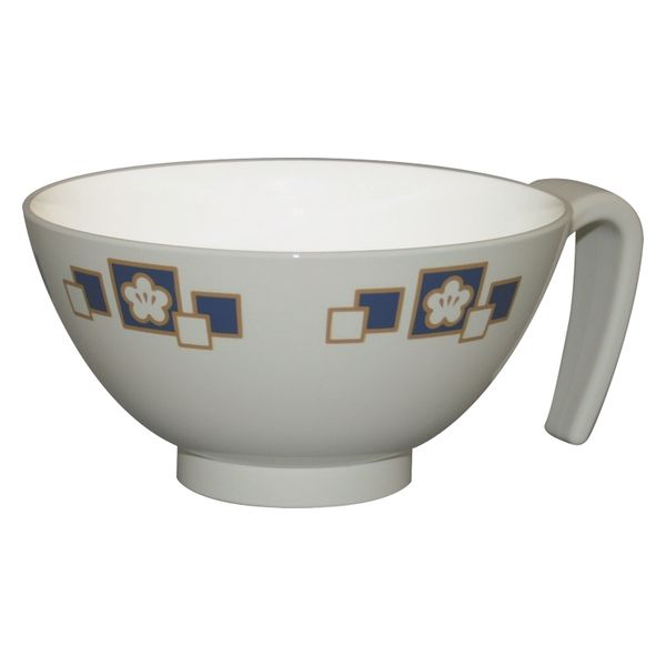 普通の飯碗の大きさで、とっても大きいので使いやすい。飯碗を傾けても取っ手があるので安定している。