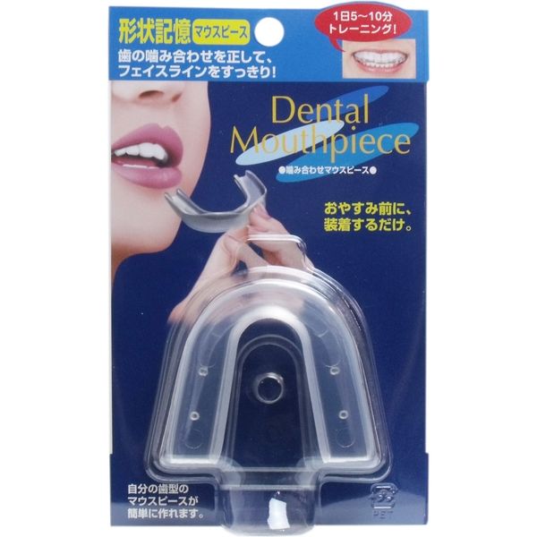 | 内容量 | 1個 | 商品仕様 | 【製品サイズ】(約)幅6.5×長さ6×高さ2cm【材質】EVA樹脂【使用方法】1.マウスピースが全ておさまる容器を用意して、マウスピースを入れてください。2.約70度のお湯を、マウスピースが全てつかるまで入れてください。3.約30秒たったら、やけどをしないように注意しながら、割り箸等で取り出します。※軟化しすぎないようにご注意ください。4.お湯をきり、少しさましてから、鏡を見ながら顔をまっすくにし、くぼみ部分を中心に合わせて上の歯にかぶせてゆっくり噛んでください。内・外より歯に押し当てるようにしてから取り出し、水に約10秒つけてください。(うまく合わなかった場合は、もう一度繰り返してください。)あとは寝るときに装着するだけ。5.マウスピースが長い場合は、はみ出した部分をハサミでカットしてください。 |
