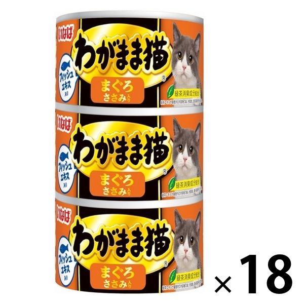 いなば わがまま猫 まぐろ ささみ入り(140g×3缶)18個 キャットフード 缶詰