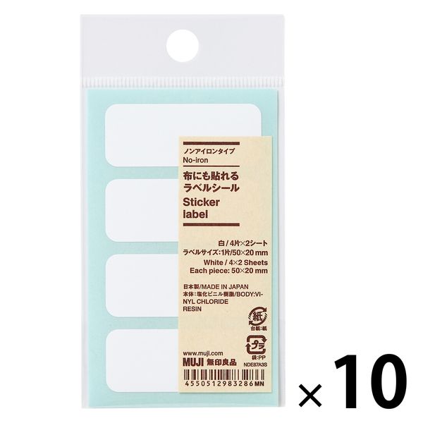 無印良品 布にも貼れるラベルシール ノンアイロンタイプ 1片 50×20mm 白 4片×2シート 1セット(10袋) 良品計画