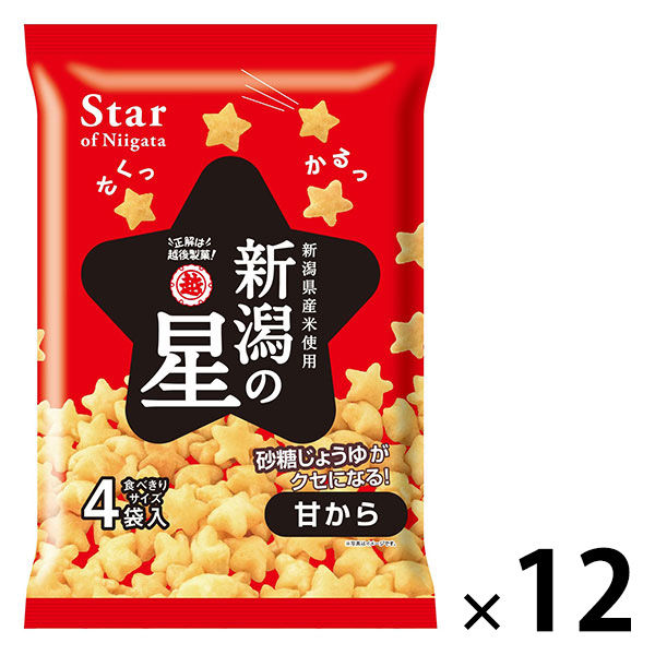 | 商品の特徴 | さくっとかるい星がたのお菓子。あまじょっぱさがクセになる!新潟県産米のみを使い、さくっとふっくらかるく仕上げた、星型のお菓子です。砂糖しょうゆそのものの味わいをいかした、あとひきのあるおいしさです。 | ||
