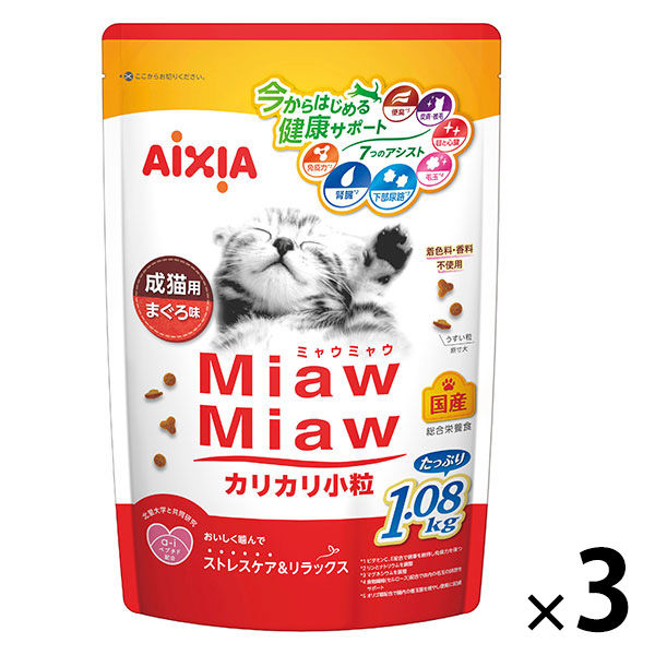 ミャウミャウ カリカリ小粒 成猫用 まぐろ味 国産 1.08kg 3袋 アイシア キャットフード 猫 ドライ
