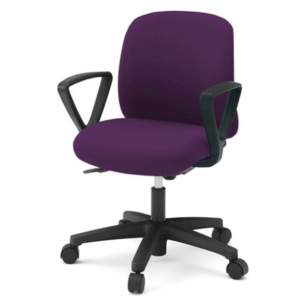 カラー プラムパープル 材質 ・背・座:抗ウイルス(バイラルオフ加工)布地張り(ポリエステル100%) 、  ・背裏:ポリプロピレン樹脂  ・肘:ポリプロピレン樹脂  ・脚:強化ナイロン樹脂、ナイロン双輪キャスター付