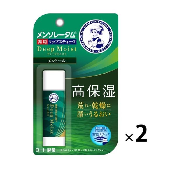 | 商品の特徴 | 「メンソレータムディープモイスト(メントール)」は、ヒアルロン酸、シアバター、ホホバオイル(うるおい成分)配合の“高保湿”リップクリーム。有効成分ビタミンE誘導体が、唇の荒れ・ひび割れを防ぎ、健やかに整えます。唇の端にもフィットしやすい楕円型容器を採用し、やわらかいリップクリームなので、唇に軽くすべらせるだけでたっぷりと塗ることが出来ます。唇に爽快感を与えるメントールタイプです。 | ||