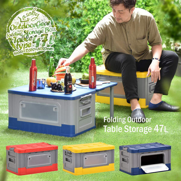 | 商品の特徴 | 収納とテーブルが合体した、画期的なアウトドアグッズ。約47Lの大容量の収納力で、キャンプに持ち込む食料などを入れて運び、二重になっている天板を広げるだけでテーブルにもなるので、機能的で便利なアイテムです。 | ||