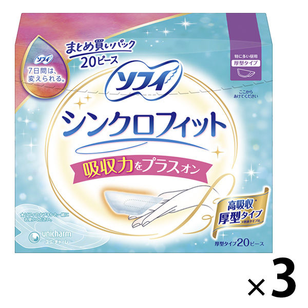 生理用品 ソフィ シンクロフィット 特に多い昼用 厚型タイプ トイレに流せる 1セット (20ピース×3個) ユニ・チャーム