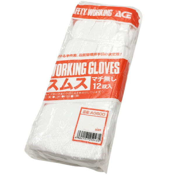 小野商事 スムス手袋 品質管理用 純綿 マチ無し LLサイズ AG600LL 1セット(1袋(12双)×10)