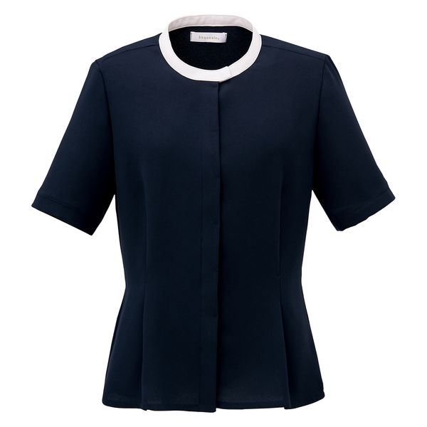 神馬本店 バイカラージョーゼット半袖ブラウス ネイビー 7号 SN62B-1-7号 1着(直送品)
