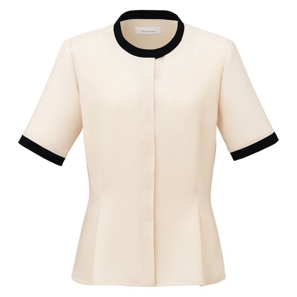 本商品:神馬本店 バイカラージョーゼット半袖ブラウス アイボリー 13号 SN62B-6-13号 1着(直送品)