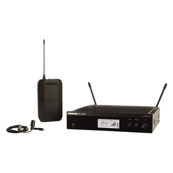 - BLX4Rハーフラックシングルチャンネル受信機、CVLラベリアマイクロホン、BLX1ボディパック型送信機、ラベリアクリップ、電源、単三形アルカリ乾電池2本、ウィンドスクリーン、ユーザーガイド