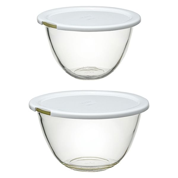 | 商品の特徴 | フタ付きの耐熱ガラス製ボウルの2個セット。深型なので調理や下ごしらえの時に混ぜやすい。冷蔵庫で保管ができる為、つくりおきに便利。フタには水切り口がついており、野菜、パスタ、お米等の水切りや湯切りもできます。電子レンジ、オーブンで使えてそのまま食卓にも並べられ食器としても使えて便利。洗い物の削減になり時短できる為、楽家事になります。食洗機対応でお手入れ簡単。スタッキングしてコンパクトに収納ができます。安心の日本製。シンプルでおしゃれなデザイン。※オーブン使用の際、フタを外してお使いください。 | ||
