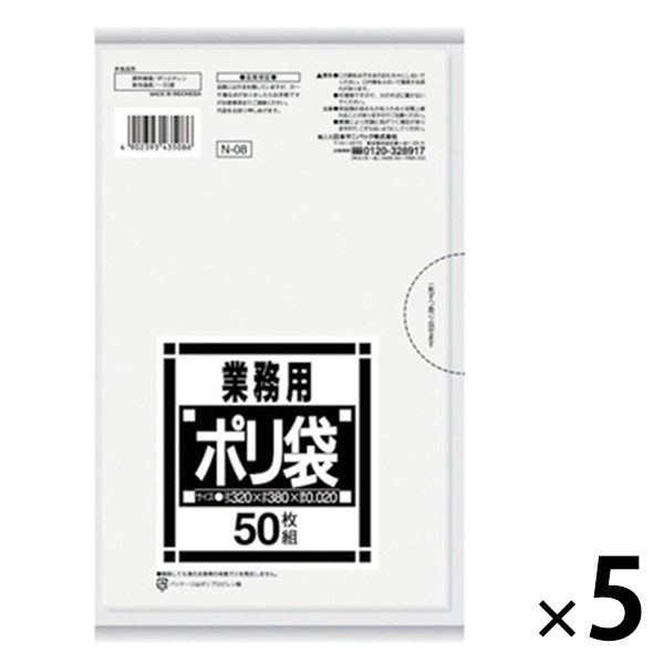日本サニパック 業務用 ポリ袋 透明 サニタリー用 N-08 432-1227(250枚:50枚入×5)