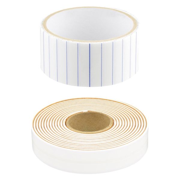 | 商品の特徴 | ●浴室・洗面まわりで起きたひび割れ・すきまなどのトラブルを解決できる補修テープセットです。1.水まわり仮補修テープ●浴槽や洗面・手洗器のヒビ割れの仮補修用テープです。●特殊フィルム採用により、耐水性・耐熱性(ー20℃~80℃)・耐候性に優れ、劣化、黄変しづらく、長持ちします。●透明フィルムテープで貼った場所が目立たず、曲面や凹凸面にもよくなじみます。●強力な粘着力を発揮します。●水のかかる、たまる場所にも使用できます。2.すきま防水テープ | ||