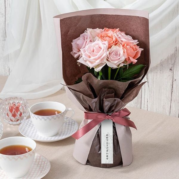 ホシファーム農園直送 届いた姿でそのまま飾れるスタンディング薔薇ブーケ スイート8本 メッセージタグ付き「おめでとうございます」