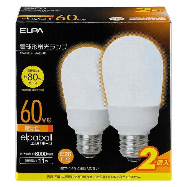 朝日電器 電球型蛍光灯A形60W2P EFA15EL/11-A062-2P 1個(直送品)
