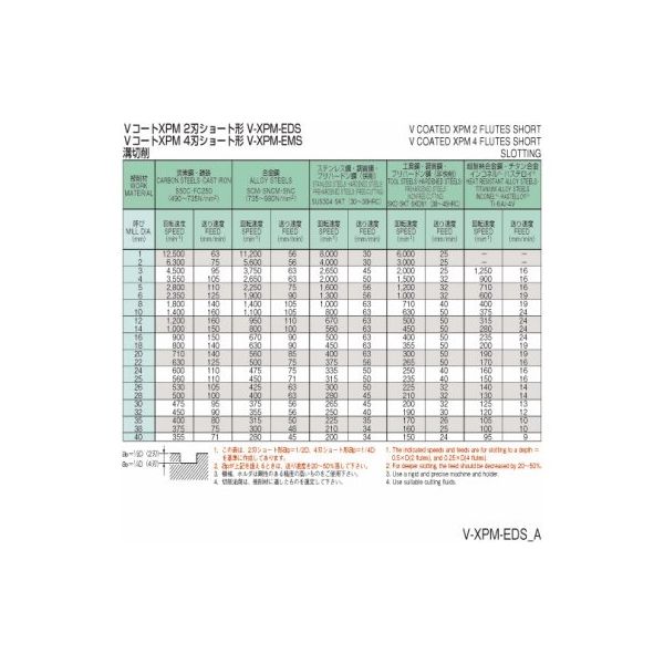 | 外径Dc | 28 | 商品仕様1 | ●【商品説明】●粉末ハイスXPMにVコーティングが施してあります。●良好な切れ味と安定した工具寿命を実現しました。●コバルトを含有する材料を使用しています。●耐溶着性、耐摩耗性に優れています。●G-LIST No.:EH1086●材質:高級粉末ハイス●表面処理:Vコーティング(複合多層コーティング)●エンドミルの外径の許容差(mm):0~-0.03●コーナ形状:φ2≦DC●ねじれ角(°):約30●外径DC(mm):28●全長LF(mm):130●刃長APMX(mm):55●シャンク径DCON(mm):25●重量(g):497●刃数(枚):2●仕様:ショート●コバルトの含有:○ |