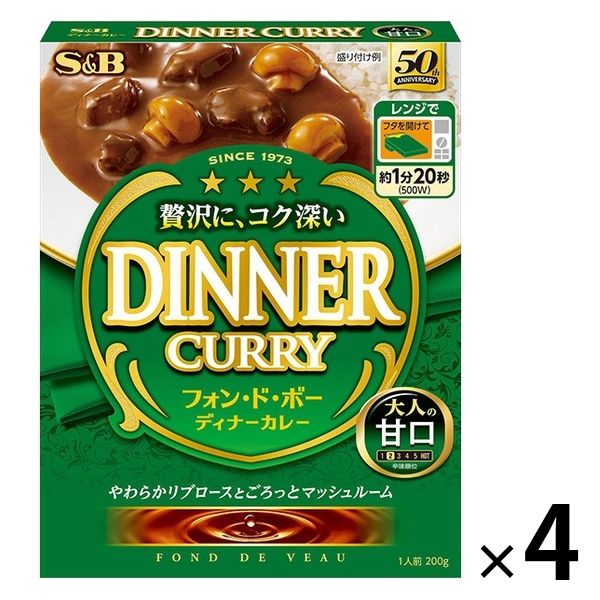 エスビー食品 甘口 フォン・ド・ボーディナーカレー 1人前・200g 1セット(4個)レトルト レンジ対応