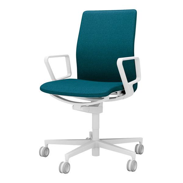 【組立設置込】コクヨ ファブレ サークル肘 キャスター ホワイト×ホワイト×ピーコックブルー C01-W151PU-W5R5R3 1脚(直送品)