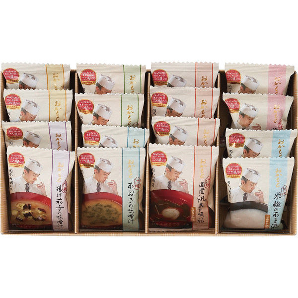 | 質量 | 327g | 内容量 | ●だし薫るかきたま汁6.4g・揚げ茄子の味噌汁7.2g・あおさの味噌汁5.1g・しるこ13g・米麹のあま酒 13.1g・葱とわかめの味噌汁6g×各2、国産帆立の吸い物 3.9g×4(フリーズドライ) |