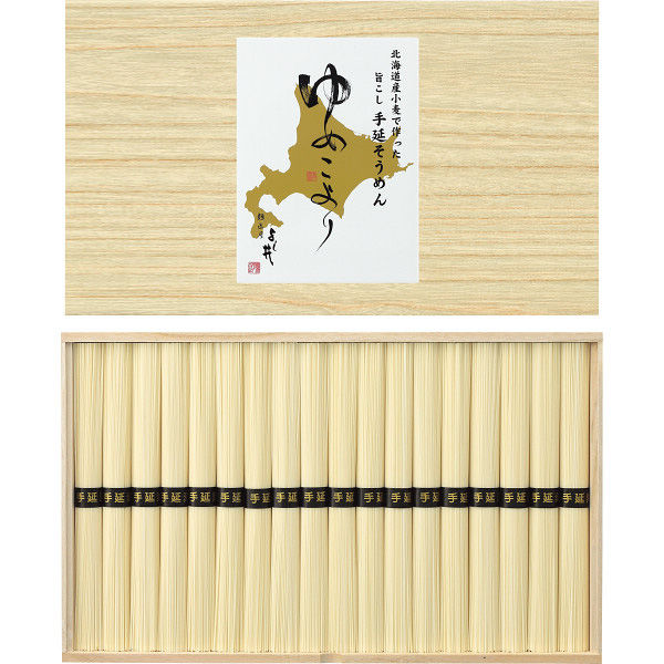 | 商品の特徴 | 北海道産小麦100%で作り上げた、しっかりとした麺のコシが自慢の手延そうめんです。 | ||