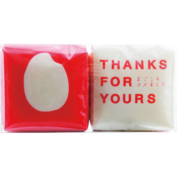 | 商品の特徴 | 2合サイズのお米2個がクリアケース入ったプチギフト向けの商品です。紅白デザインで、感謝の気持ちがしっかり伝わるギフトです。 | ||