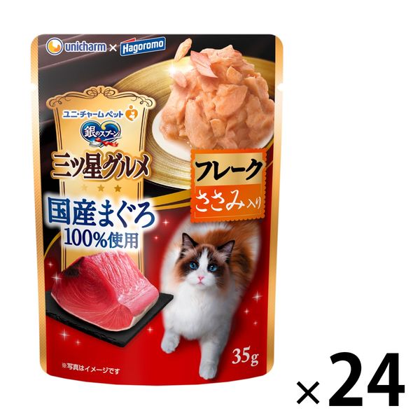 銀のスプーン 三ツ星グルメ 国産天然まぐろ100% フレーク まぐろ ささみ入り35g 24袋 キャットフード ウェット パウチ