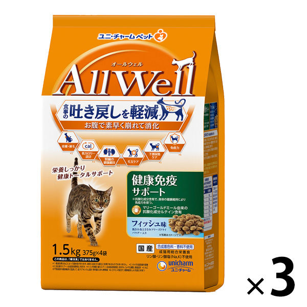 オールウェル 健康免疫サポート フィッシュ味 国産 1.5kg(小分け 375g×4袋)3袋 キャットフード 猫 ドライ