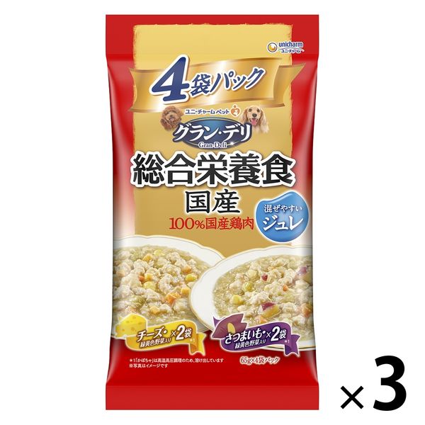 グランデリ 総合栄養食 ジュレ 4袋パック(チーズ・さつまいも 65g×各2袋)国産 3袋 ドッグフード 犬 パウチ