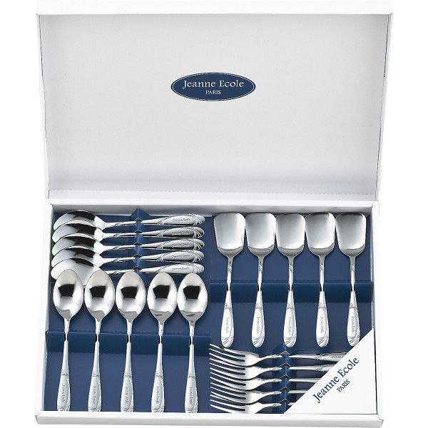 | 内容量 | ●コーヒースプーン(長さ約12cm)・ヒメフォーク(長さ約12.5cm)・アイススプーン(長さ約12cm)・スイーツスプーン(長さ約12.5cm)各5本 | 質量 | 335g |