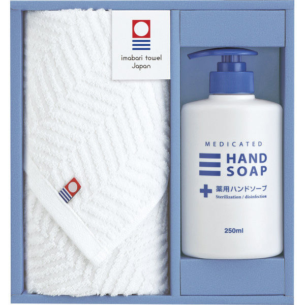 | 商品の特徴 | ふんわりやさしい肌触りで吸水性に優れた今治タオルと、薬用ハンドソープとのセットです。 | ||