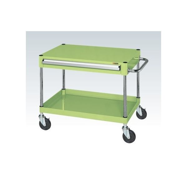 | 本体色 | グリーン | 商品特徴 | ●ボルトレスで組立簡単。棚板を逆さにするだけで、皿型・フラット型と組み替えることができます。静粛性・始動性に優れるサイレントエラストマー車を採用。収納に便利な引出し付です。 |