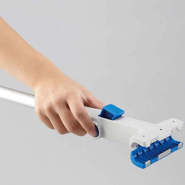 | 商品の特徴 | ワンタッチタイプハンドル、Sサイズ(1本柄)2本入、ボタンを押すだけで簡単にモップ糸など着脱可能。特殊エラストマー加工で吸い付くようにしっかり握れて楽に掃除ができる。 | ||