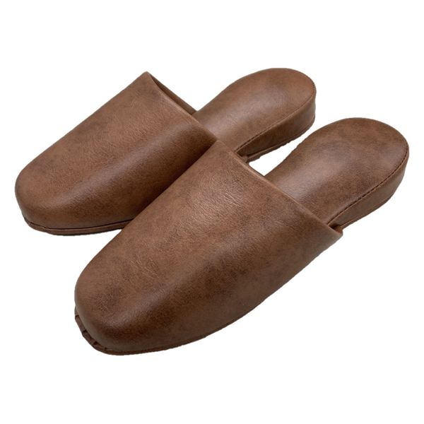 オーミケンシ 高級レザー調スリッパ ダークブラウン 10800047 1足