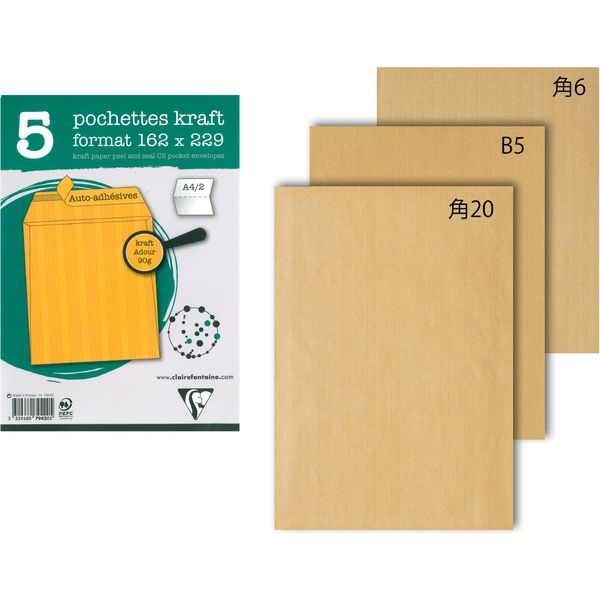 クレールフォンテーヌ クラフト封筒 S(A5判がそのまま入る/角6) cf7942 1袋(5枚)
