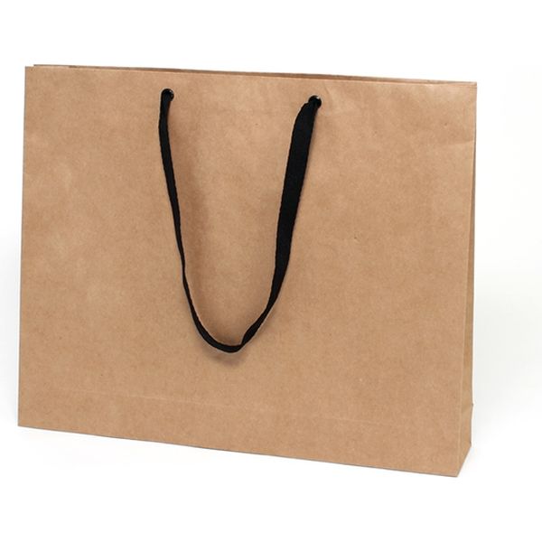 正面巾をゆったり、マチは狭いタイプの紙袋です。衣料品を入れるのに適しています。