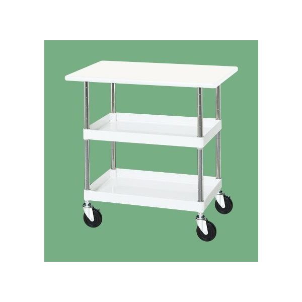 CSパールワゴン(中量タイプ/均等耐荷重150kg/抗菌・抗ウイルスポリエステル天板/ゴム車/H760mm/2段+天板付/移動式/天板付)(直送品)