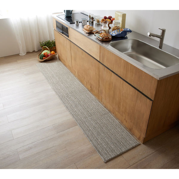 | 商品の特徴 | 洗濯機で丸ごと洗えて、天日干しができドライクリーニングも出来る業界初スミノエオンリー製法のラグマット。一見無地調に見えますが、近くで見ると多色に見えるカラーリングや、質感の違う糸をポイントで使用する事によってシンプルながらも飽きの来ないデザインにしています。キッチンマット展開もあるので組み合わせて使用できます。 | ||