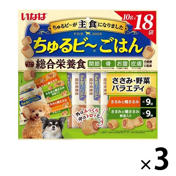 (バラエティパック)いなば ちゅるビーごはん 犬 ささみ・野菜 総合栄養食(10g×18袋)3袋 ドッグフード セミモイスト
