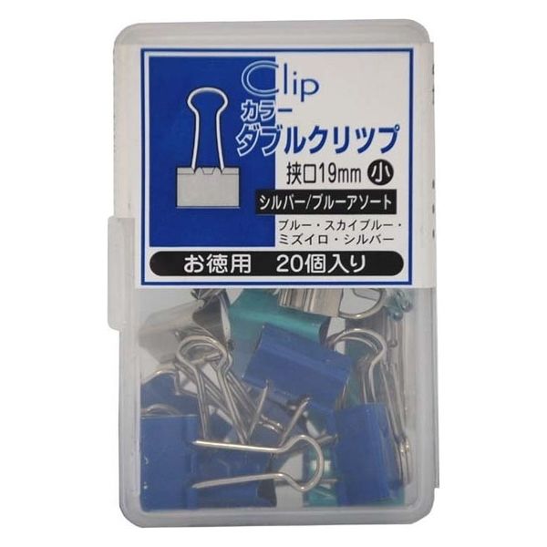 日本クリノス カラーダブルクリップ徳用 小 シルバー ブルーアソート Wクリ-3C-B 1セット(1ケース(20個)×5)