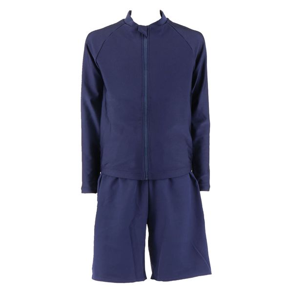 | 商品の特徴 | 上下が分かれたセパレーツ型で、長袖の上着はできるだけ露出を軽減し紫外線対策にも有効です。またボトムスはハーフパンツを採用しており、体のラインが出にくい形状になっています。 | ||