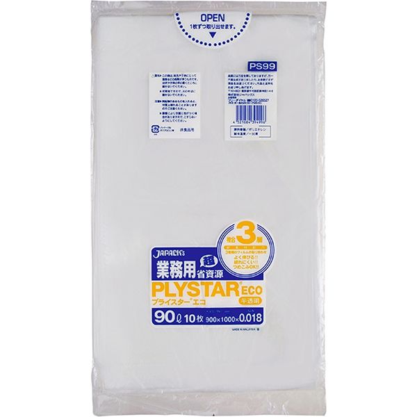 ジャパックス 複合3層ポリ袋 プライスターエコ 90L10枚 半透明 厚み0.018mm PS99 1冊